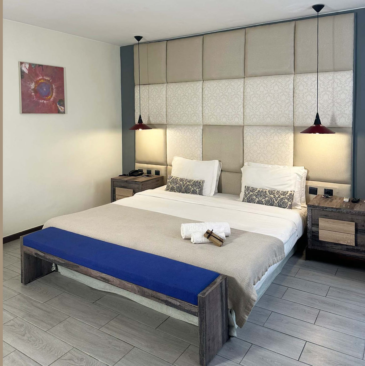 Spacieuses et raffinées, ces chambres sont idéales pour ceux qui préfèrent le calme, loin de l’agitation tananarivienne. Vous bénéficierez de suffisamment d’espace pour travailler ou vous détendre dans ces chambres superbement aménagées, un lieu de détente absolue. L’ensemble est sublimé par des toiles originales, uniques à chaque chambre. Certaines [...]